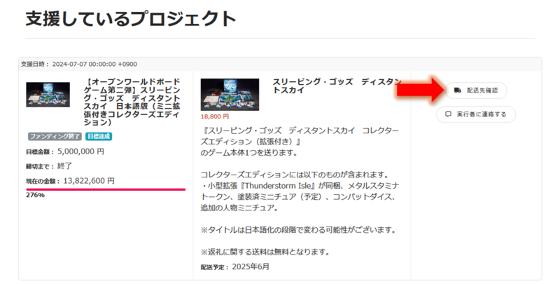 2. 「支援したプロジェクト」を選択