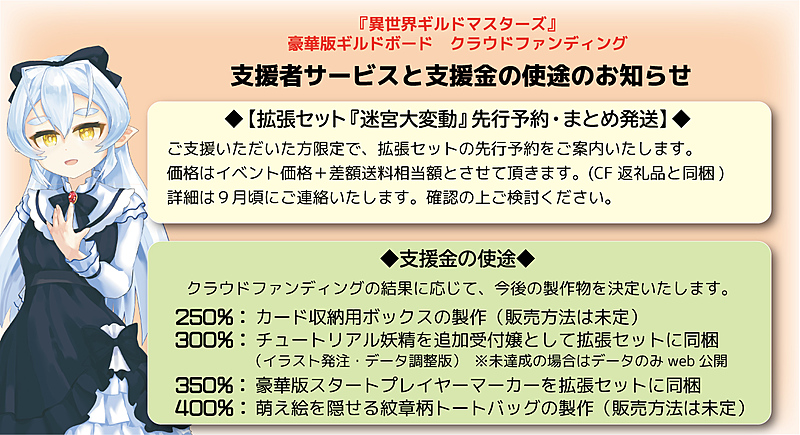 また、『異世界ギルドマスターズ』関連のサプライ・グッズなどの生産資金として使用します。